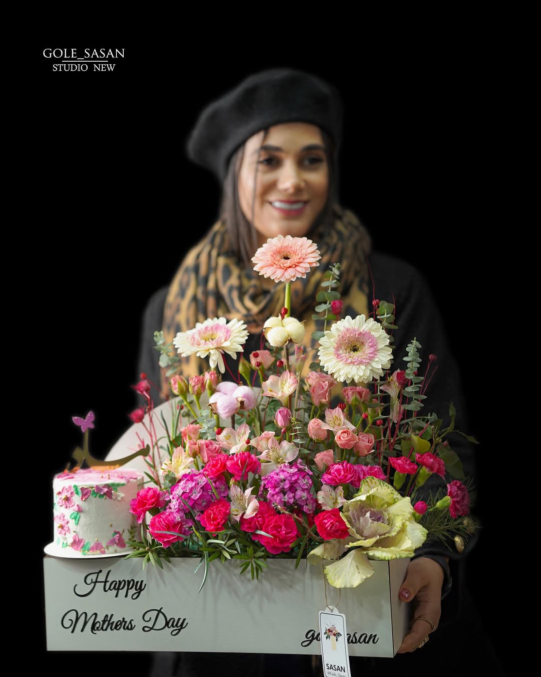 خرید باکس گل و کیک ویدا - گل ساسان گلفروشی رشت