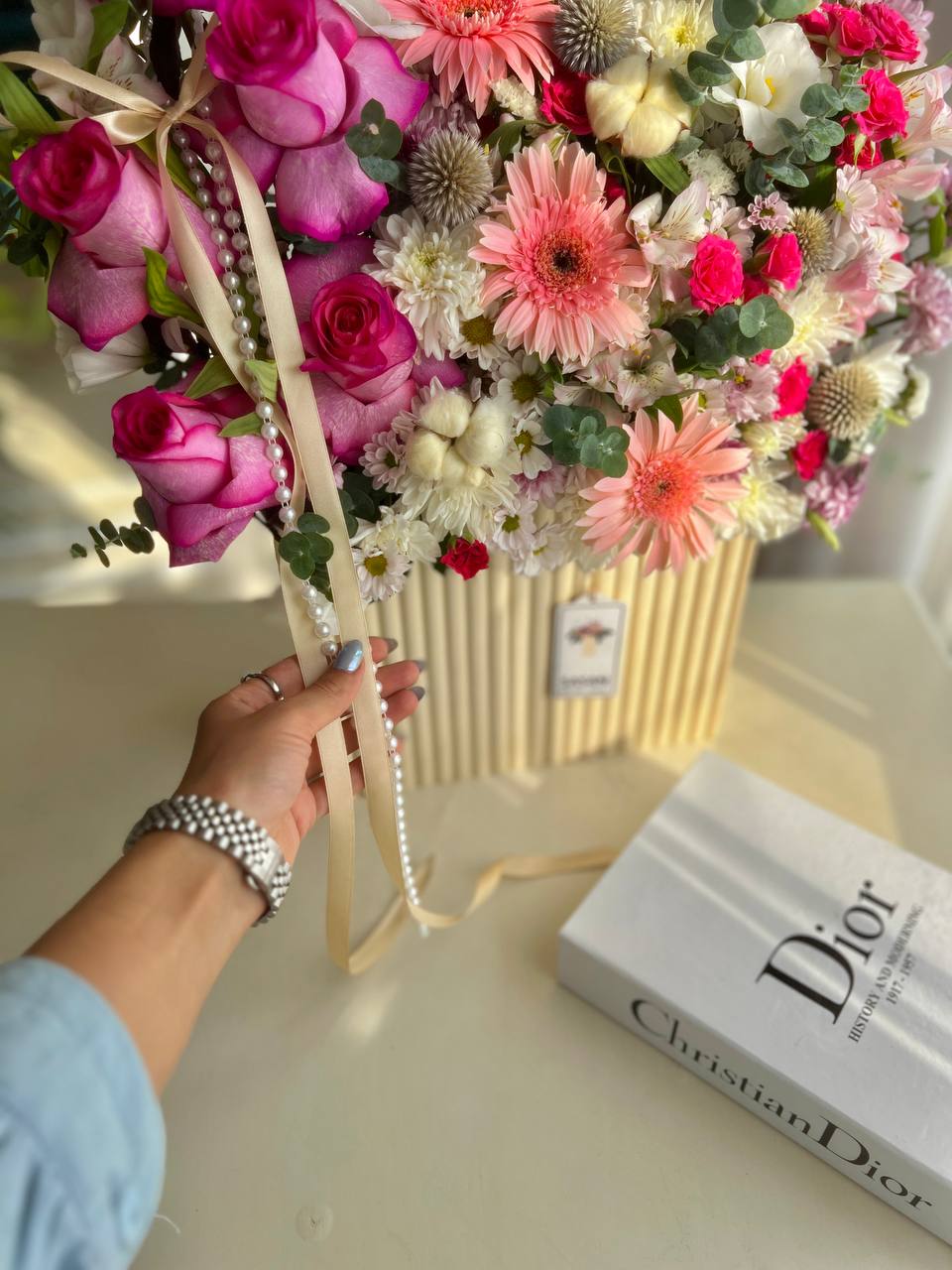 ⚠️در محصولات سفارشی،محصول ۸۰ درصد مشابه عکس فوق خواهد بود و اندکی تغییر با توجه به موجودی گل روز و …امکانپذیر است.