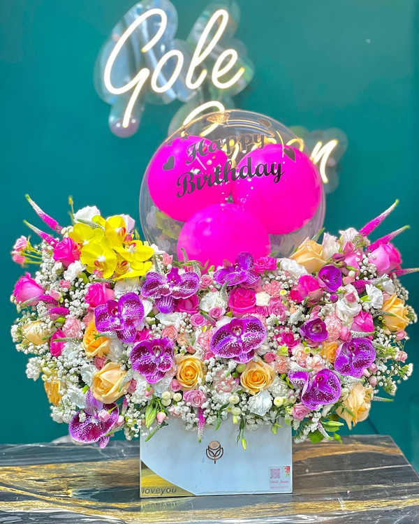 ⚠️در محصولات سفارشی،محصول ۸۰ درصد مشابه عکس فوق خواهد بود و اندکی تغییر با توجه به موجودی گل روز و …امکانپذیر است.