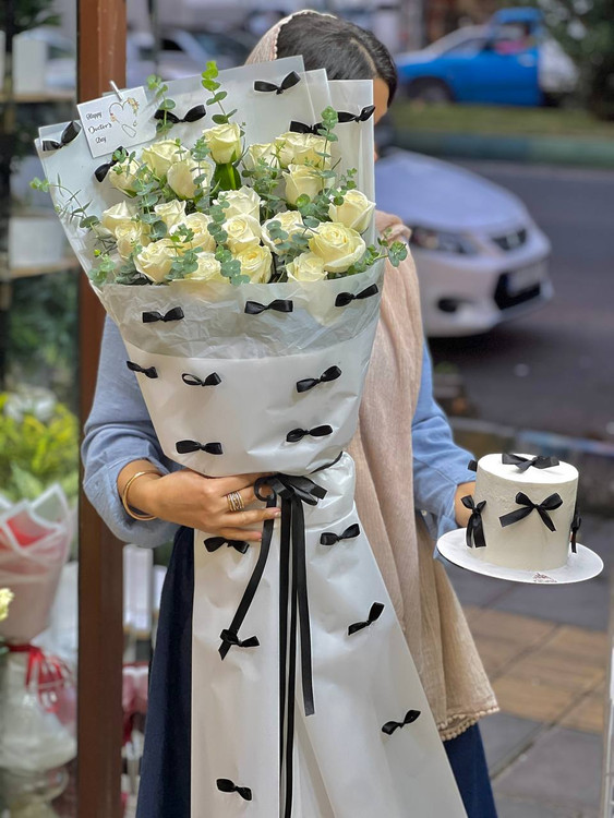 ⚠️در محصولات سفارشی،محصول ۸۰ درصد مشابه عکس فوق خواهد بود و اندکی تغییر با توجه به موجودی گل روز و …امکانپذیر است.