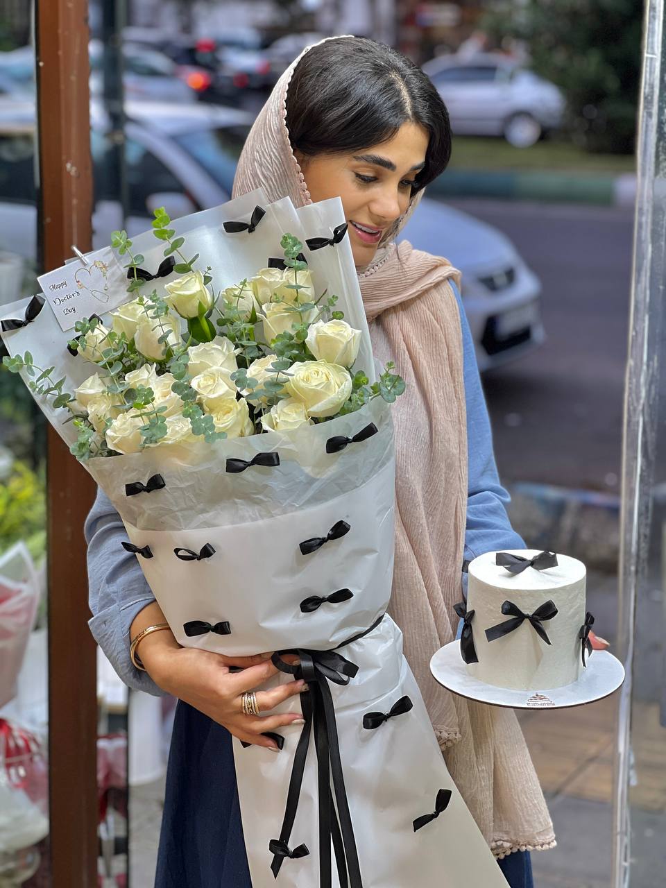 ⚠️در محصولات سفارشی،محصول ۸۰ درصد مشابه عکس فوق خواهد بود و اندکی تغییر با توجه به موجودی گل روز و …امکانپذیر است.