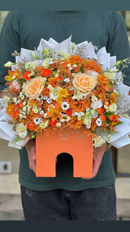 ⚠️در محصولات سفارشی،محصول ۸۰ درصد مشابه عکس فوق خواهد بود و اندکی تغییر با توجه به موجودی گل روز و …امکانپذیر است.