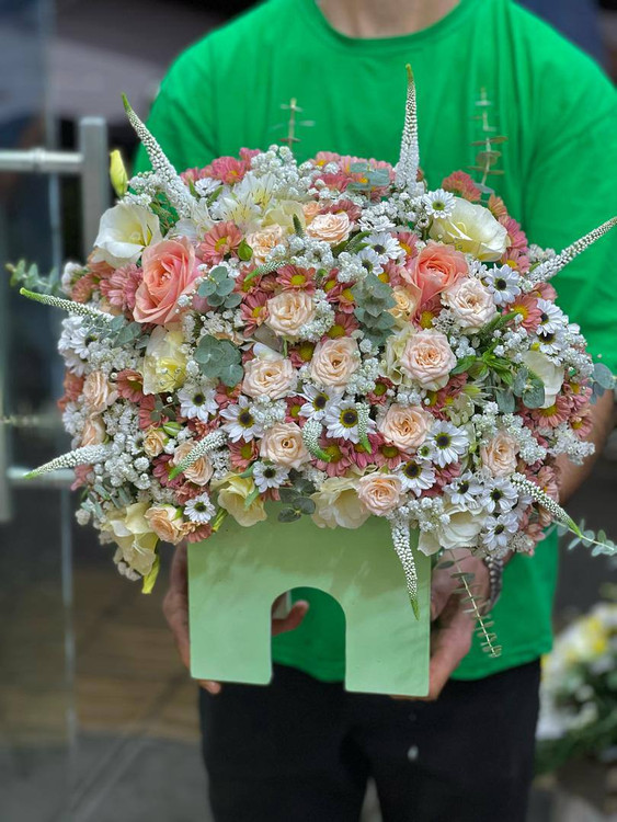 ⚠️در محصولات سفارشی،محصول ۸۰ درصد مشابه عکس فوق خواهد بود و اندکی تغییر با توجه به موجودی گل روز و …امکانپذیر است.