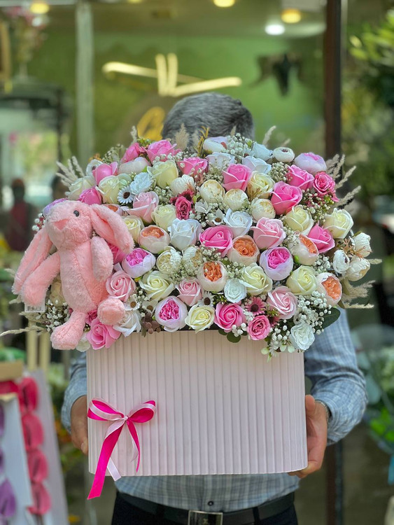 ⚠️در محصولات سفارشی،محصول ۸۰ درصد مشابه عکس فوق خواهد بود و اندکی تغییر با توجه به موجودی گل روز و …امکانپذیر است.