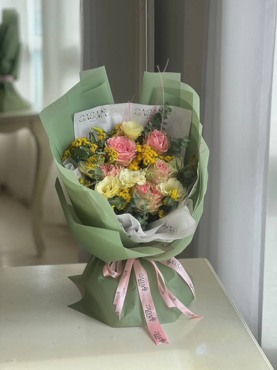 ⚠️در محصولات سفارشی،محصول ۸۰ درصد مشابه عکس فوق خواهد بود و اندکی تغییر با توجه به موجودی گل روز و …امکانپذیر است.