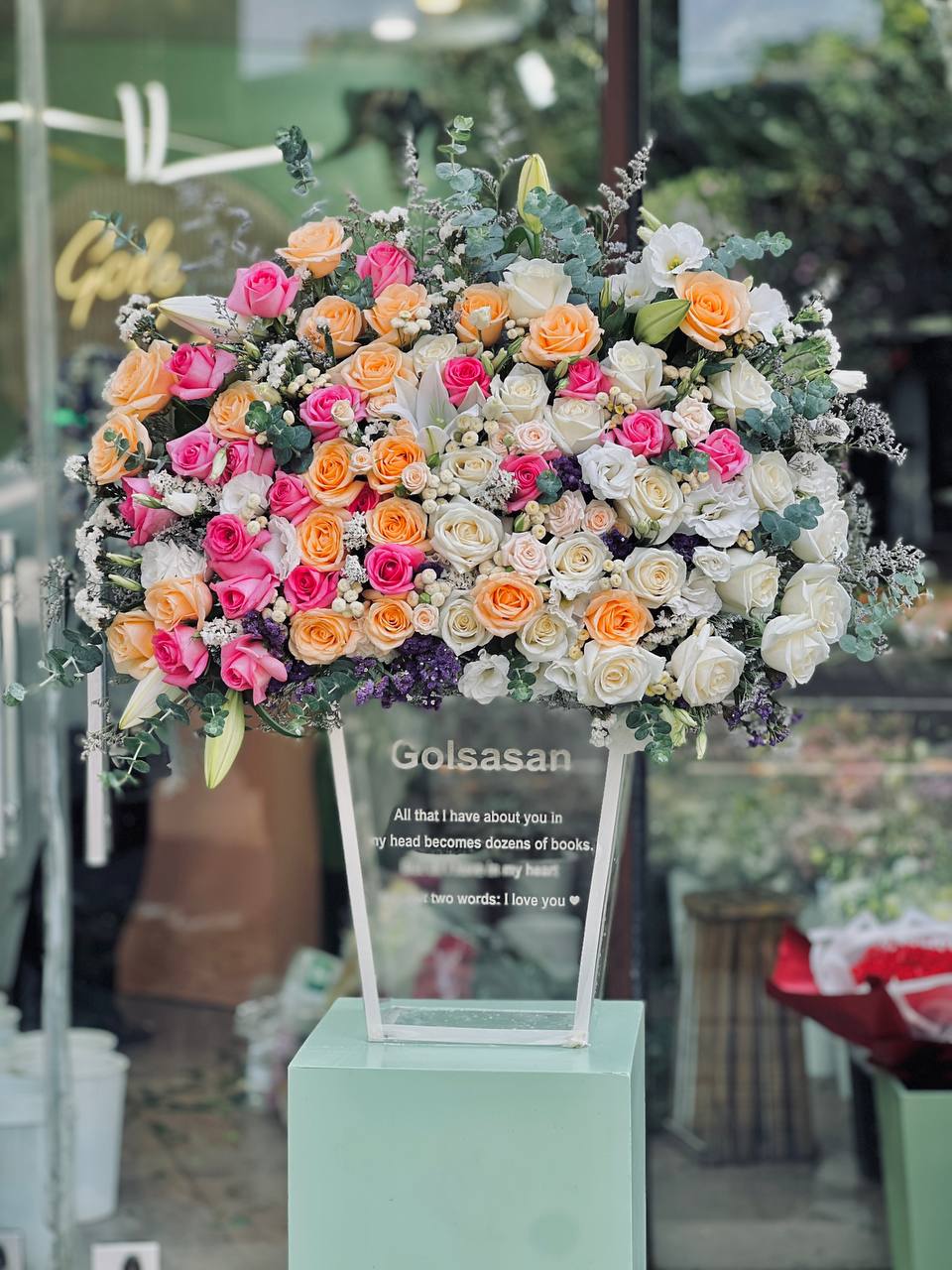 ⚠️در محصولات سفارشی،محصول ۸۰ درصد مشابه عکس فوق خواهد بود و اندکی تغییر با توجه به موجودی گل روز و …امکانپذیر است.