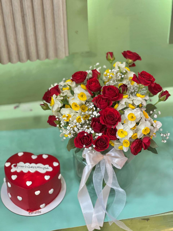 ⚠️در محصولات سفارشی،محصول ۸۰ درصد مشابه عکس فوق خواهد بود و اندکی تغییر با توجه به موجودی گل روز و …امکانپذیر است.