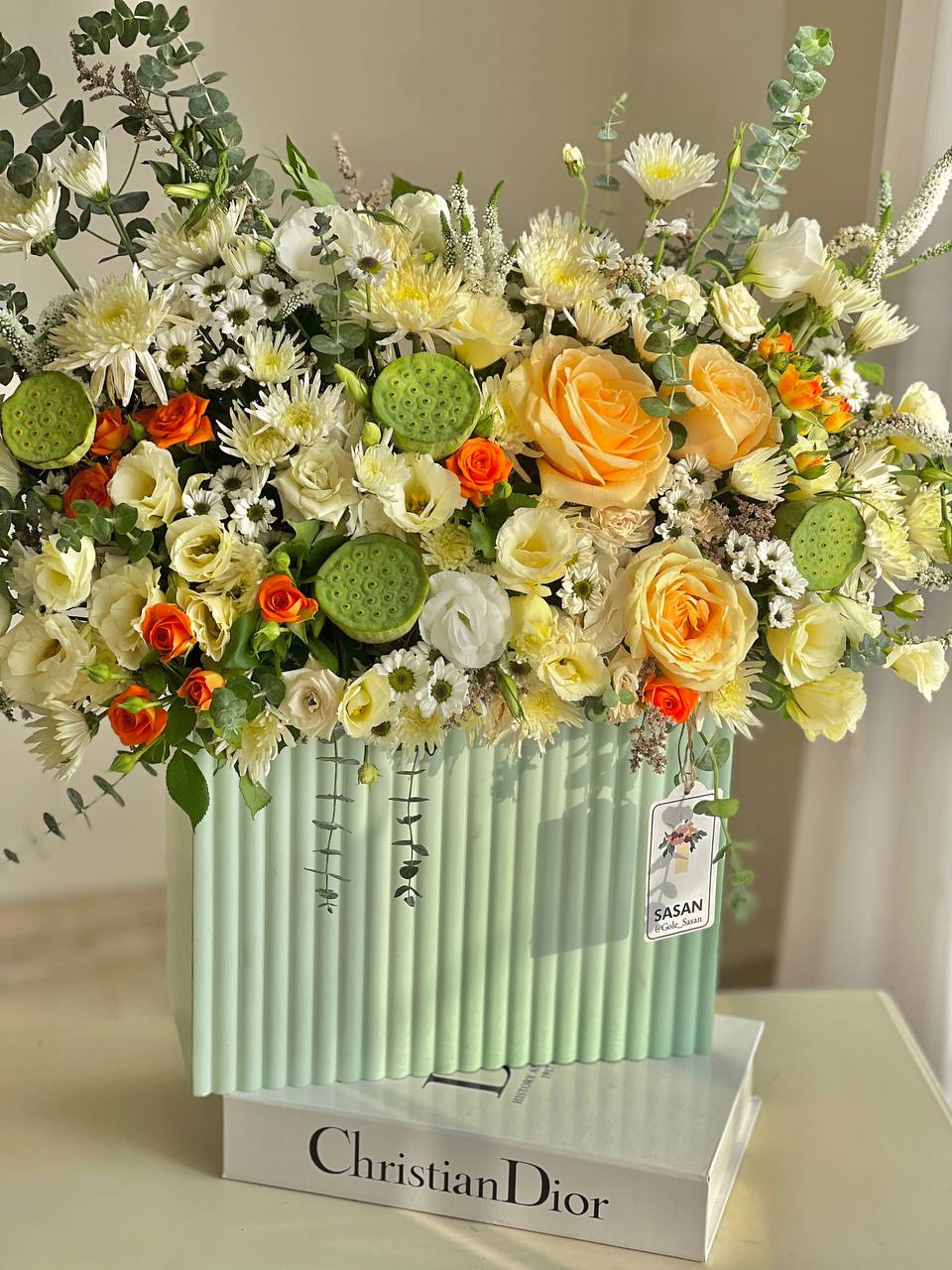 ⚠️در محصولات سفارشی،محصول ۸۰ درصد مشابه عکس فوق خواهد بود و اندکی تغییر با توجه به موجودی گل روز و …امکانپذیر است.