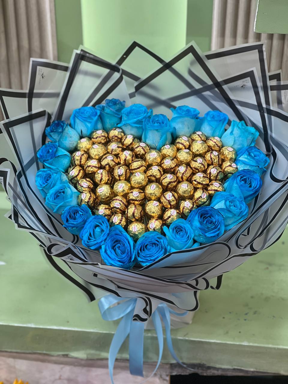 ⚠️در محصولات سفارشی،محصول ۸۰ درصد مشابه عکس فوق خواهد بود و اندکی تغییر با توجه به موجودی گل روز و …امکانپذیر است.