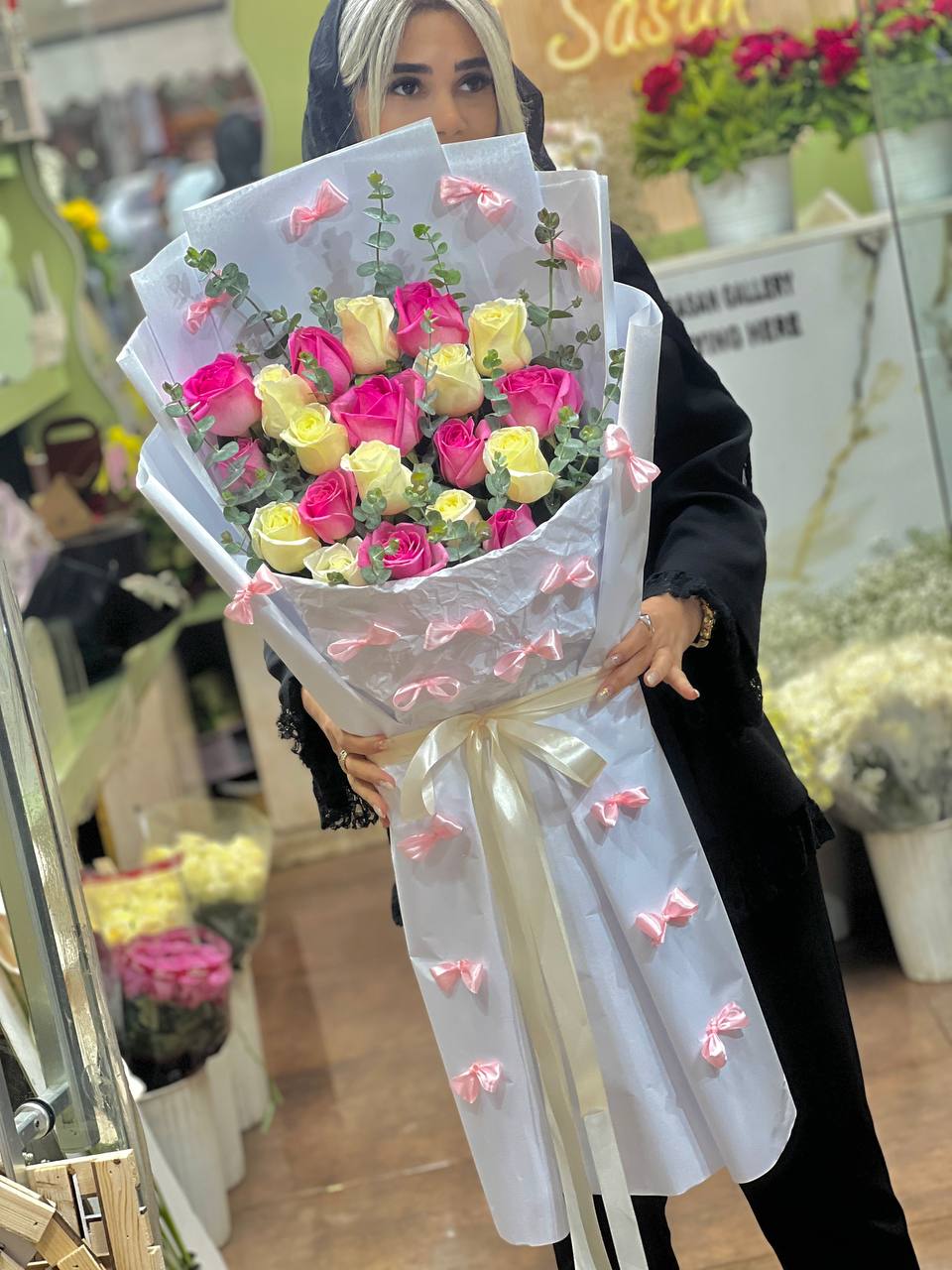 ⚠️در محصولات سفارشی،محصول ۸۰ درصد مشابه عکس فوق خواهد بود و اندکی تغییر با توجه به موجودی گل روز و …امکانپذیر است.