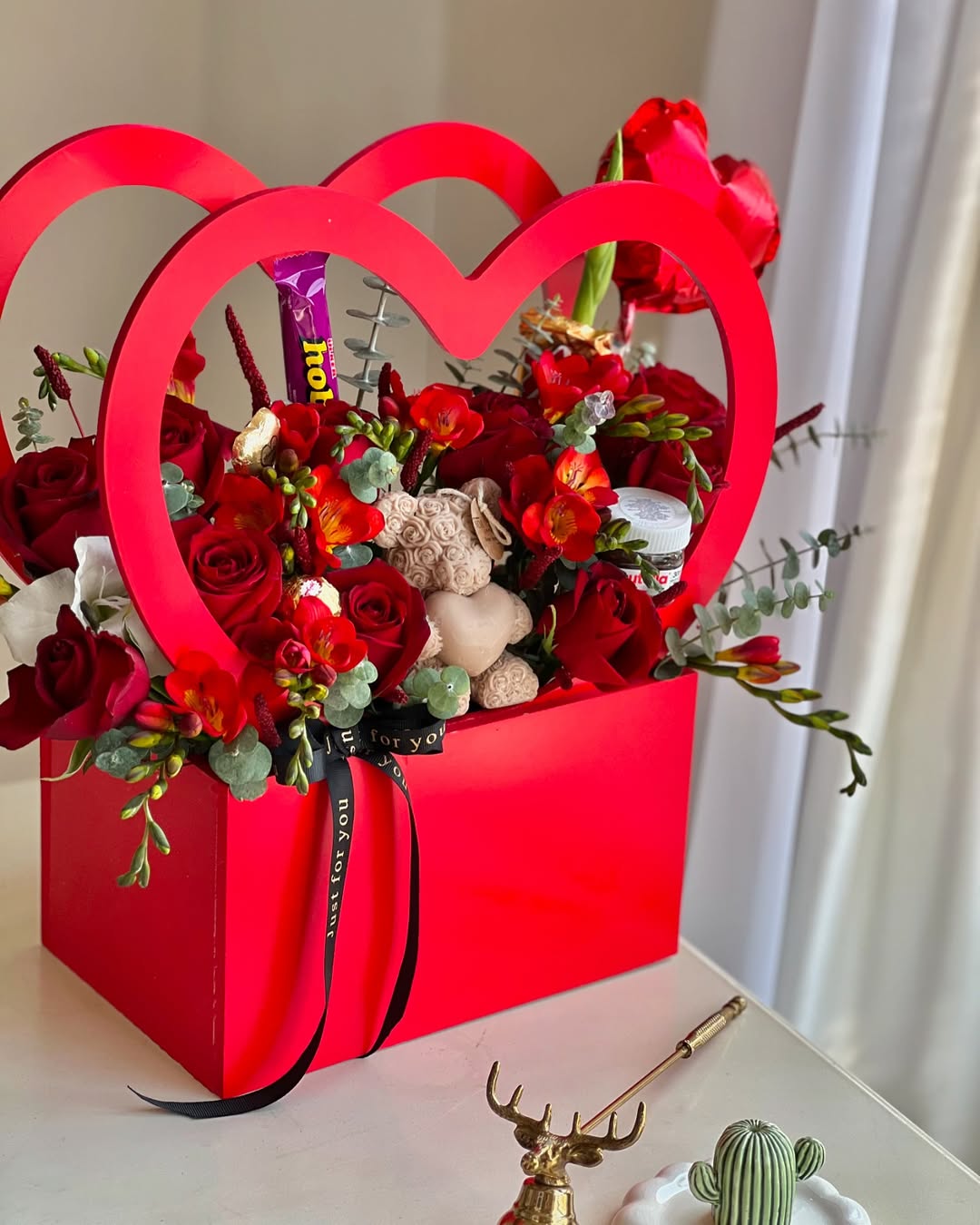 ⚠️در محصولات سفارشی،محصول ۸۰ درصد مشابه عکس فوق خواهد بود و اندکی تغییر با توجه به موجودی گل روز و …امکانپذیر است.