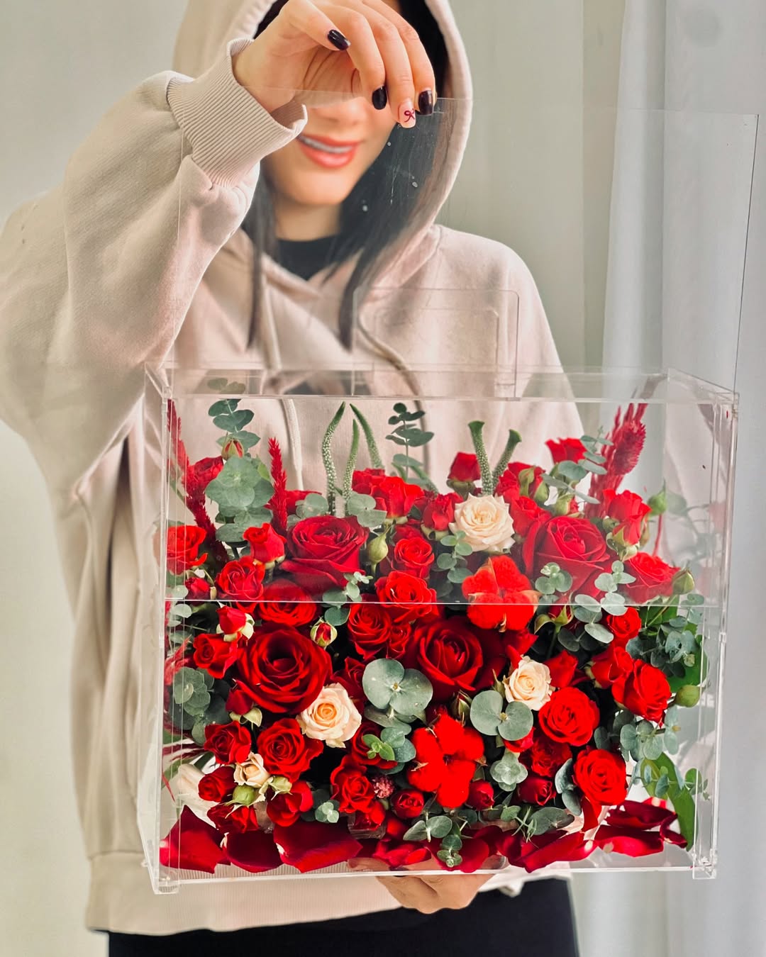 ⚠️در محصولات سفارشی،محصول ۸۰ درصد مشابه عکس فوق خواهد بود و اندکی تغییر با توجه به موجودی گل روز و …امکانپذیر است.