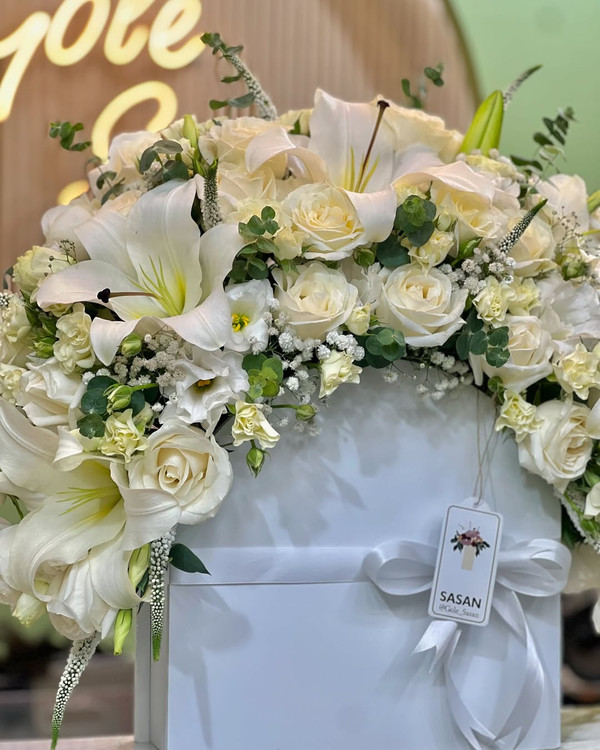 ⚠️در محصولات سفارشی،محصول ۸۰ درصد مشابه عکس فوق خواهد بود و اندکی تغییر با توجه به موجودی گل روز و …امکانپذیر است.